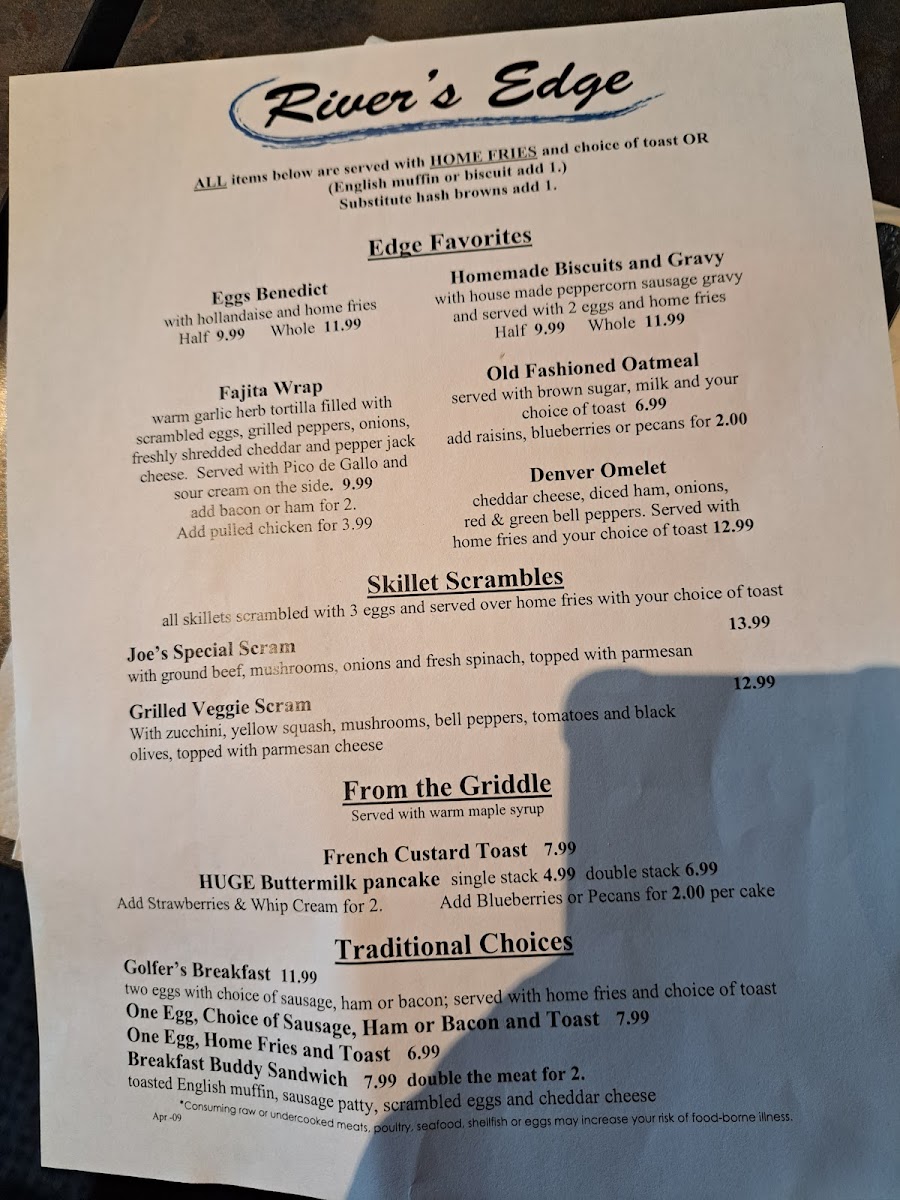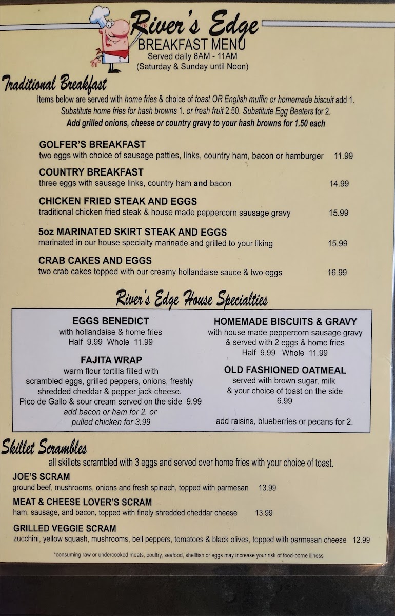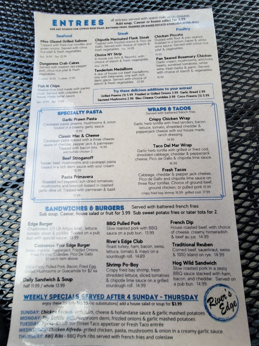 Whether you're here for breakfast, lunch, or dinner, River's Edge offers a warm atmosphere, friendly service, and a stunning view, making every visit memorable. Patrons rave about the exceptional quality and generous portions, ensuring you will want to return for more!