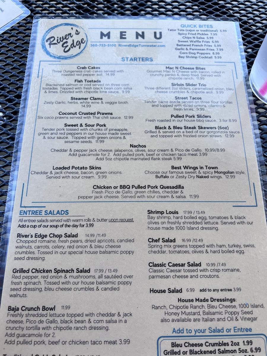 Welcome to River's Edge, a culinary gem tucked away at 4611 Tumwater Valley Dr SE in Olympia, WA. The menu here is a delightful mix of innovative and classic dishes that cater to all palates.